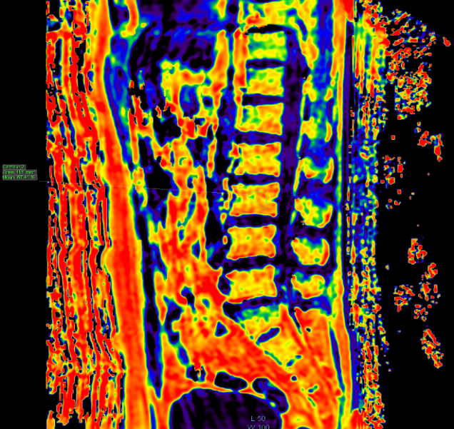 脂肪定量是临床最多使用的,除了用在肝脏上,还可用在骨骼肌方面,比如通过测量椎骨的脂肪分数来判断骨质疏松。