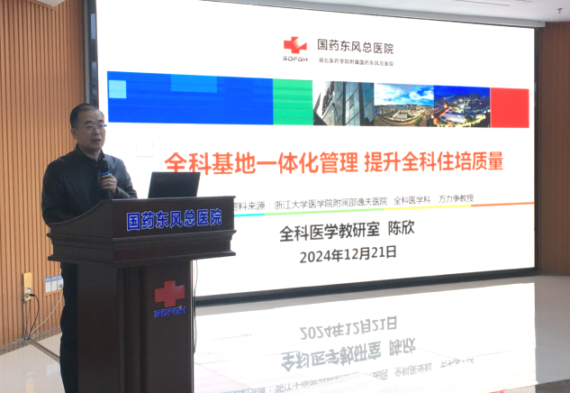 全科基地主任陈欣以《全科基地一体化管理,提升全科住培质量》为题作专题授课,他讲述了全科医学的发展历史、全科医疗与专科医疗的区别等方面,强调要加强全科医生的培养力度,建立全科医生培养方案,与基层实践基地要实现一体化的协同管理。
