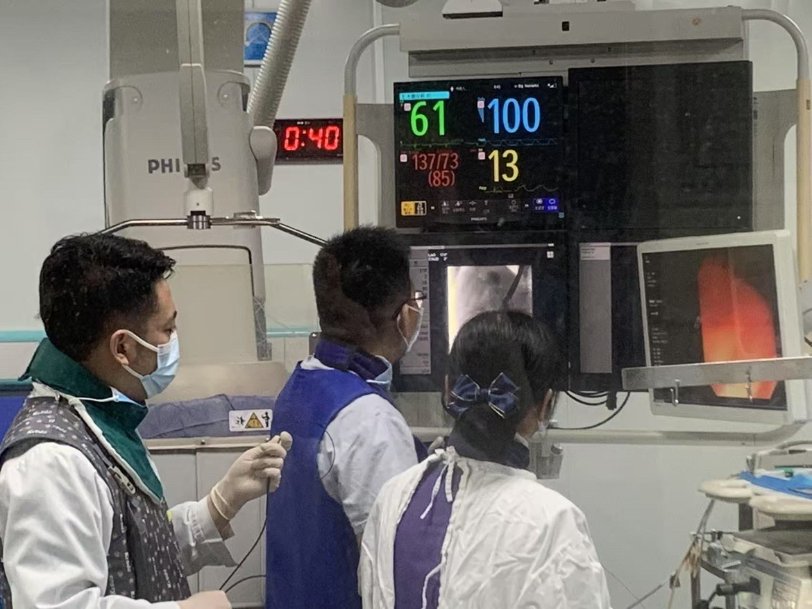 子夜,电子钟的荧光在介入室墙壁上无声跳动,三双被蓝光映亮的眼睛正聚焦在屏幕的方寸之间。这是国药东风总医院肝胆胰外科团队与生命对弈的第五个小时,柳叶刀在0.1毫米的胆管壁间游走,导丝正穿越肿瘤构筑的黑暗迷宫。