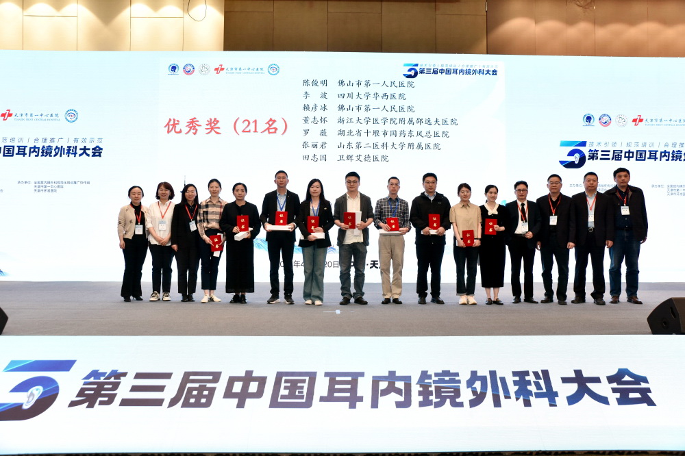 2025年4月18至20日,第三届中国耳内镜外科大会在天津举行。会议涵盖了耳内镜外科领域的最新进展、技术创新和临床经验分享,与会专家和学者将分享耳内镜手术视频,展示手术技巧和治疗效果。国药东风总医院耳鼻咽喉科主治医生罗薇在第三届中国耳内镜外科大会中荣获优秀奖。