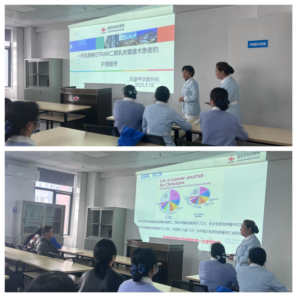 近日,乳腺·甲状腺外科护理团队成功举办了一场以“TRAM乳房重建”为主题的全院护理查房活动,旨在提高全院护理人员对乳房重建相关知识的理解和掌握,同时为患者提供更加专业、细致的护理服务。