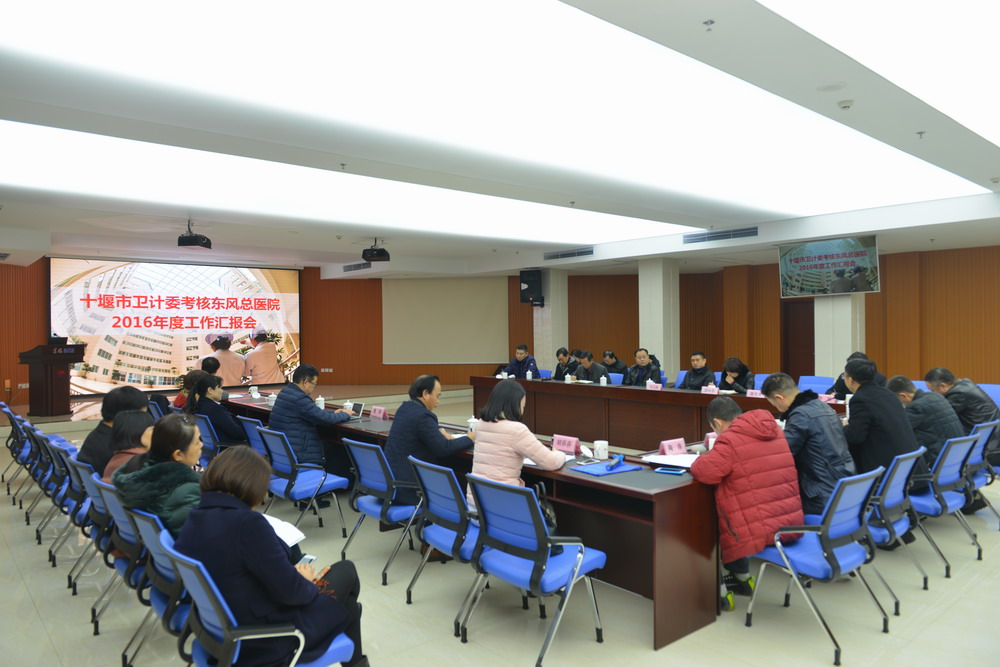 12月27日下午,十堰市卫计委副主任严彬率队,对我院2016年度综合目标管理工作进行考核验收。王永安、李斌、张华勇、庞光明、殷桂蓉、魏涧、周文波等院领导及职能部门负责人出席汇报会。