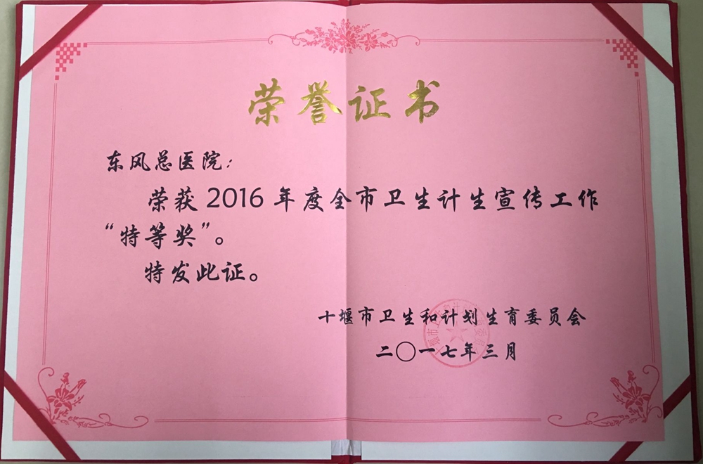 我院荣获2016年度全市卫生计生宣传工作“特等奖”