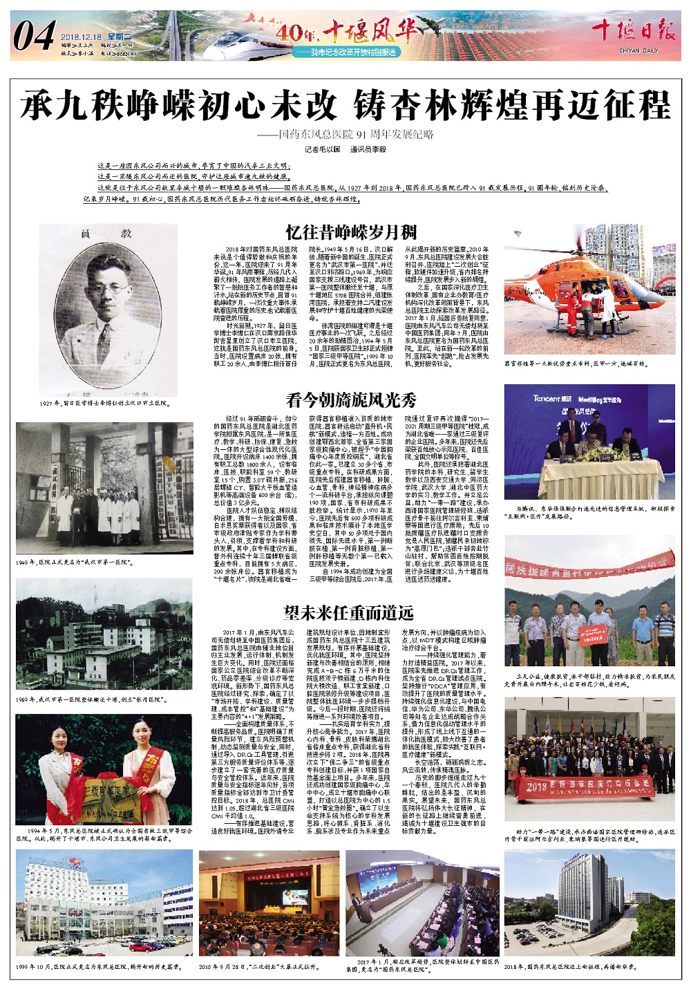2018年对国药东风总医院来说是个值得骄傲和庆祝的年份。这一年,医院迎来了91周年华诞。91年风雨兼程,历经几代人薪火相传,医院发展的道路上凝聚了一批批医务工作者的智慧和汗水。站在新的历史节点,回首91载峥嵘岁月,一次次重大事件,承载着医院厚重的历史,也记载着医院奋进的历程。