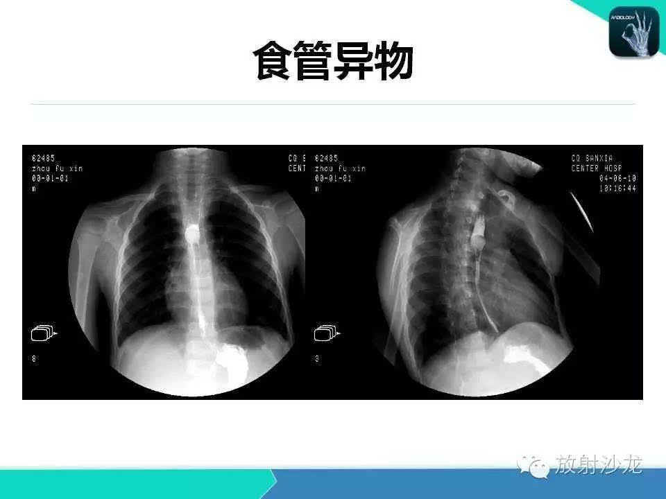 分为不透X线异物和可透X线异物,对于前者可通过普通摄片和透视确诊。而对与可透X线异物,食管钡餐检查是一一个较好的检查手段。我们知道异物容易停留在食管生理狭窄处,以食管人口多见,其次是主动脉压迹处和左主支气管压迹处。小的异物或圆钝异物不容易在食管内留存,留存在食管内的异物,大的异物可使吞钡检查显示充盈缺损征;检查小的异物时,则需要反复吞服钡剂,在钡剂流人胃内后仔细观察食管内有无涂布钡剂的异物,或通过被损伤的食管黏膜上附着钡剂来间接确定异物的位置、大小和形态。