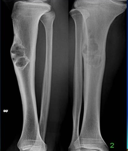 入院后,值班医生查体,根据门诊检查,初步诊断为:胫骨下段骨肿瘤。谈瘤色变,孩子还这么小,这等于给孩子的未来判了死刑,孩子爸爸听完伤心欲绝。值班医生和护士长极力安慰孩子爸爸,同时尽快安排做进一步检查,请儿科专家会诊。