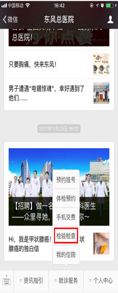 就诊服务—检验检查—打开检验报告或者检查报告列表—查看检验结果或检查结果