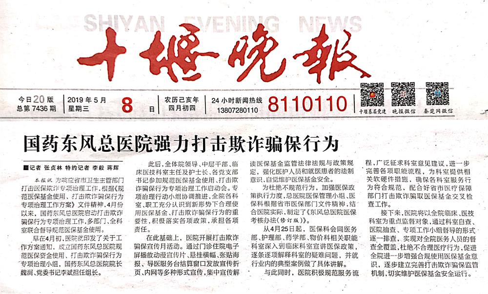 为响应省市卫生主管部门打击医保欺诈专项治理工作,根据《规范医保基金使用、打击欺诈骗保行为专项治理工作方案》文件精神,4月份以来,国药东风总医院启动打击欺诈骗保行为专项治理工作,多部门、全科室联合督导规范医保基金使用。