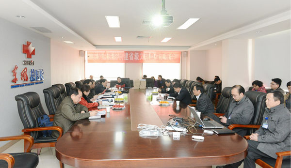 2003年2月,医院心血管内科、肝胆外科、小儿科被授予首批湖北省重点学科,此图为重点专科评审汇报会。